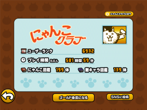 通勤電車内で座った時と、会社の始業時間前、お昼休み時間、家に帰ってからの時間のほとんどかな。今週からは、ブログを書いたり、動画編集したりの時間も使っているので、けっこうな時間にゃんこ大戦争に使っていることがわかりました。